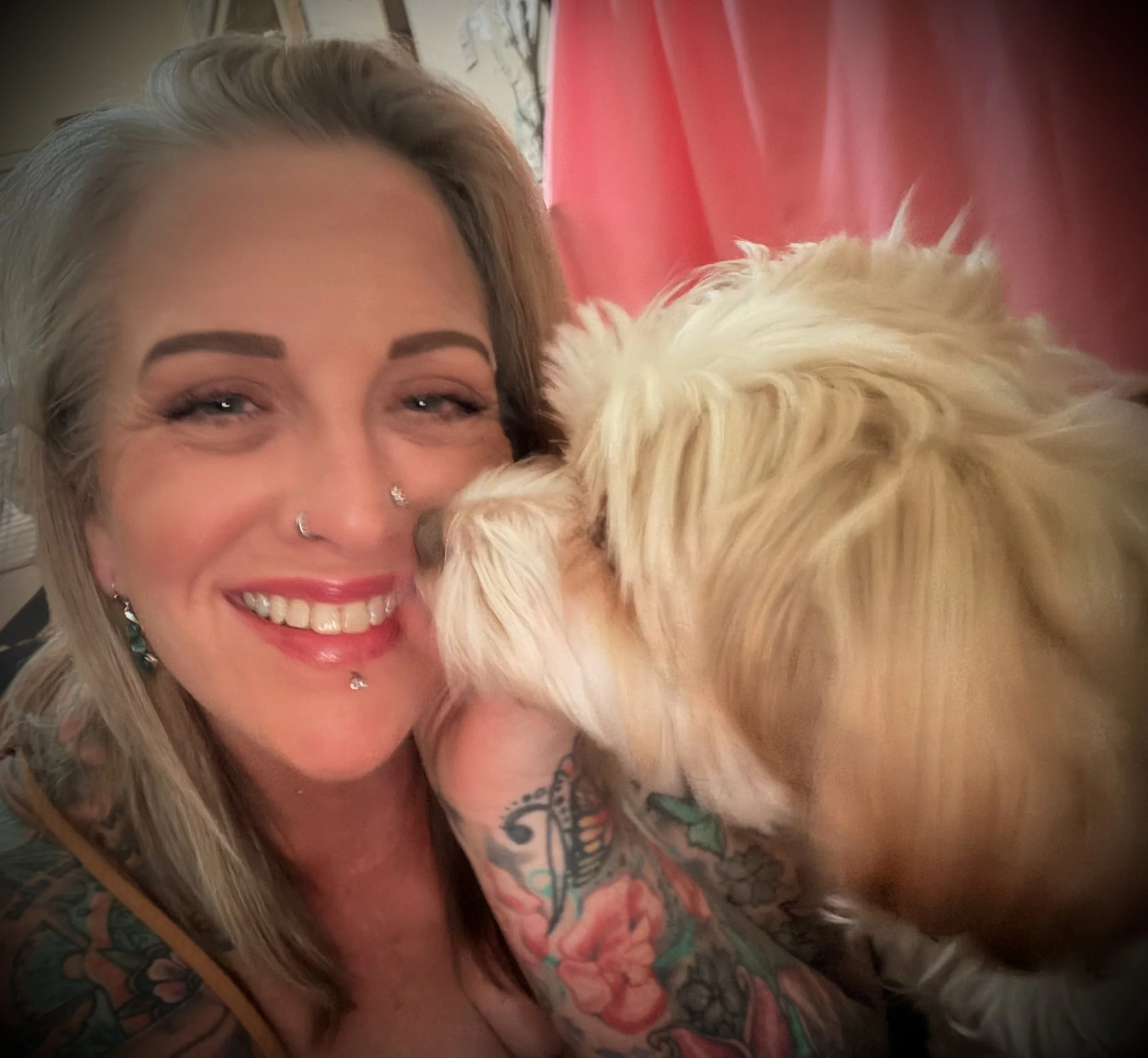 When I’m not coaching or creating, you'll catch me meditating on the beach, cruising the California coast (top-down with Daezeee, my M4), or chillin' with my lil shorkie-girl, Scout. Tattoos, piercings, and lived-in wisdom are part of my story—I honor my growth on my skin as much as in my soul.